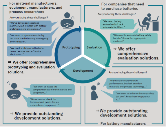 Fandong continues, “since the exhibition, we have received numerous inquiries about our contract services that will fully launch when the Yokohama Technology Center is operational. This business will offer solutions such as contract prototyping, evaluation, and the development of batteries. We will provide tailored proposals to address customer concerns, including material selection, manufacturing process optimization, performance evaluation data, and promotional strategies.”